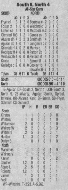 | 1 | 2 | 3 | 4 | 5 | 6 | 7 | 8 | 9 | R | H | E | |