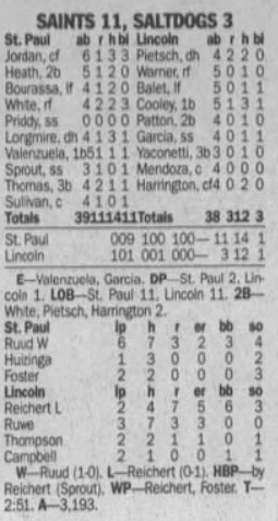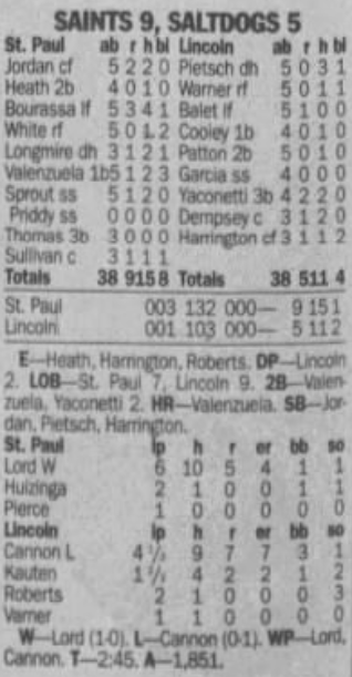 | 8/29/07 | St. Paul 9 at Lincoln 5 | J. Lord | J. Cannon | – | 1,851 |