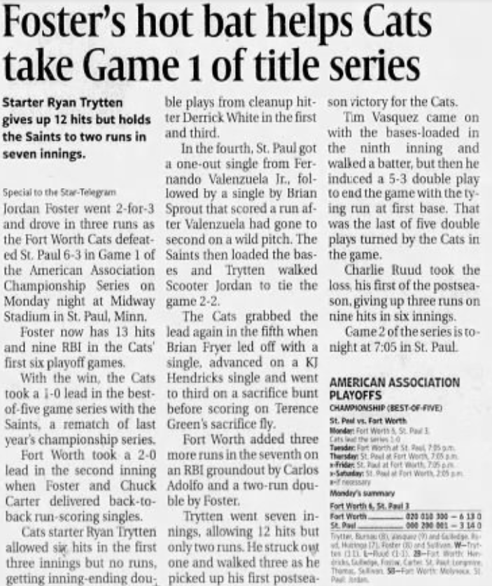 American Association Finals — FORT WORTH WINS 3-2